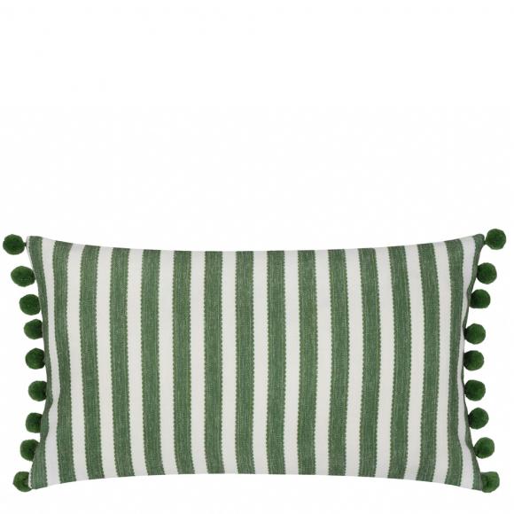 This pom pom cushion is available either filled or as a cover only. The contrast stripe reverse fabric and contrast coloured pom pom trim give it a fabulously inpired design flair