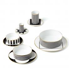 Minimalist and nonetheless opulent – with Ca’ d’Oro, the finest burnished gold refines pure black and white contrasts. The delicate golden band is applied by hand to each and every piece.