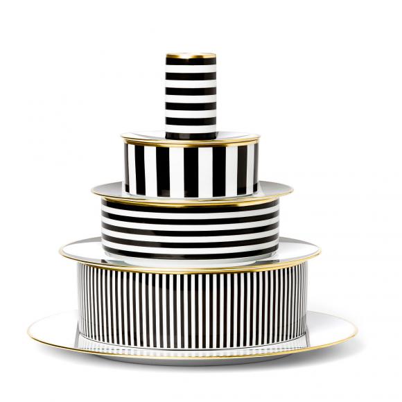 Minimalist and nonetheless opulent – with Ca’ d’Oro, the finest burnished gold refines pure black and white contrasts. The delicate golden band is applied by hand to each and every piece.