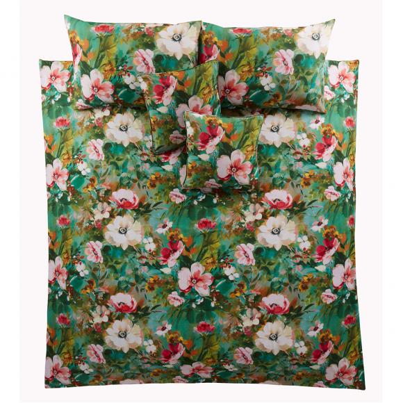 A fabulous colourful collection of elegant bouquets of painterly flowers layer this stunning duvet set.