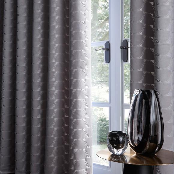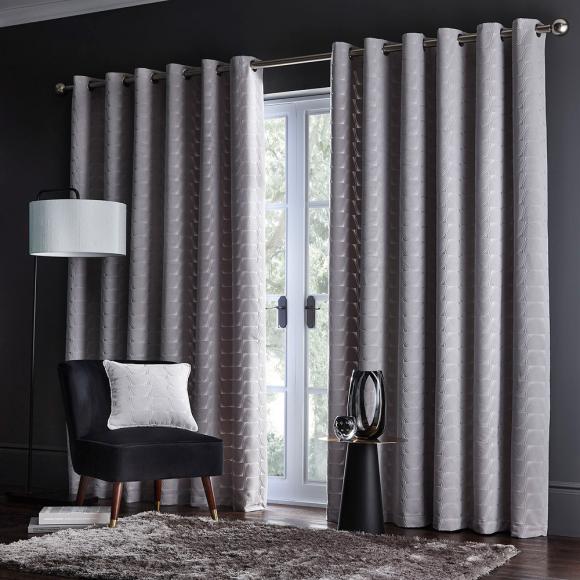 Lucca is a sleek contemporary curtain with a subtle geo velvet pattern in an silver colourway.