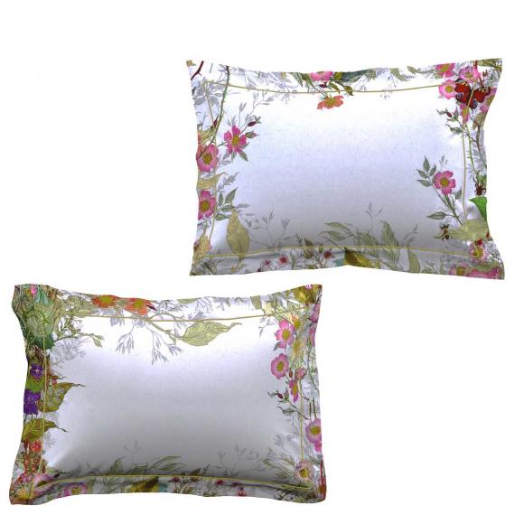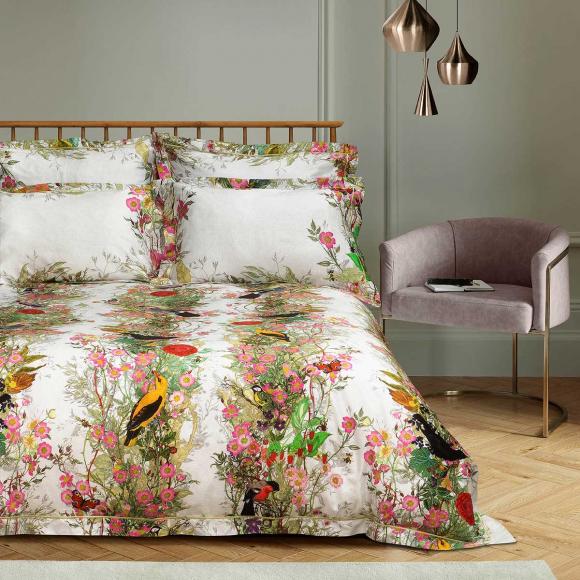 In a luxurious 220tc cotton sateen and with an oxford edge and contrasting satin stitch detail this design is an ornamental grove of sylvan delight for a modern interior paradise.