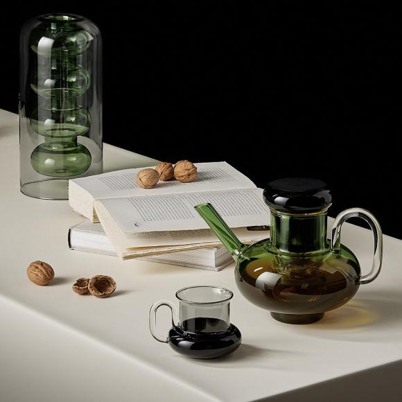 Handmade with subtle levels of green and grey tonal translucency, Bump offers an elegant approach to the alchemical processes of tea making, mixology and floral arrangements.