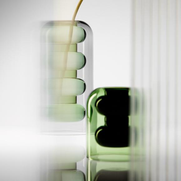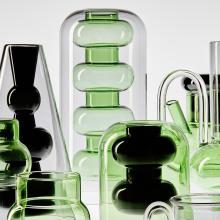 Handmade with subtle levels of green and grey tonal translucency, Bump offers an elegant approach to the alchemical processes of tea making, mixology and floral arrangements.