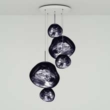 Melt is one of the most distinctive light fittings, carefully manufactured with a fabulous mirror finish, that then turns into a mesmerising hot blown glass effect when on.