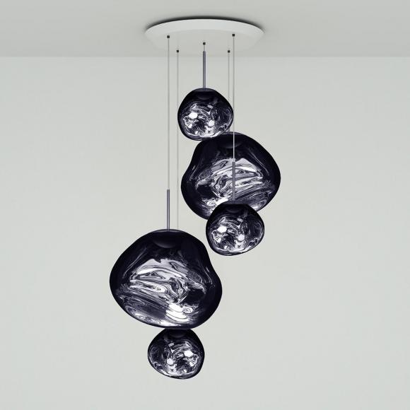 This pre-assorted cluster includes Tom's ceiling canopy with multi hanging points. We will send you 3 Melt mini LED pendants and 2 Melt LED pendants. You can create your own take on the arrangement or we can advise how to space the lights to give the std effect. The canopy comes in white and can be primed and painted to match your ceiling if a different finish is required.