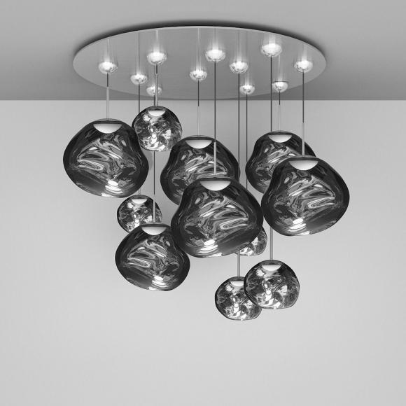 This pre-assorted cluster includes Tom's Mega ceiling canopy with multi hanging points. We will send you 5 Melt mini LED pendants and 6 x Melt Large LED pendants. You can create your own take on the arrangement or we can advise how to space the lights to give the std effect.