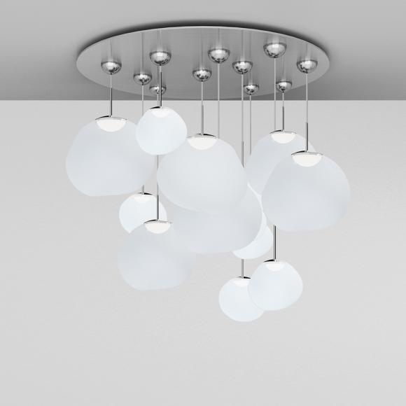 This pre-assorted cluster includes Tom's Mega ceiling canopy with multi hanging points. We will send you 5 Melt mini LED pendants and 6 x Melt Large LED pendants. You can create your own take on the arrangement or we can advise how to space the lights to give the std effect.