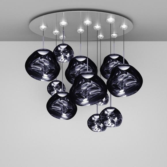 This pre-assorted cluster includes Tom's Mega ceiling canopy with multi hanging points. We will send you 5 Melt mini LED pendants and 6 x Melt Large LED pendants. You can create your own take on the arrangement or we can advise how to space the lights to give the std effect.