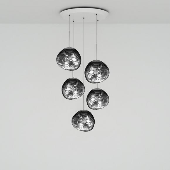 This pre-assorted cluster includes Tom's ceiling canopy with multi hanging points. We will send you 5 Melt mini LED pendants. You can create your own take on the arrangement or we can advise how to space the lights to give the std effect. The canopy comes in white and can be primed and painted to match your ceiling if a different finish is required.
