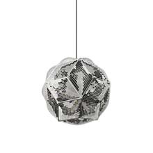 An intricate, polyhedral pendant made of diamond-shaped metal panels, etched and expanded to form its puffy silhouette.