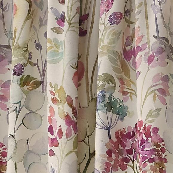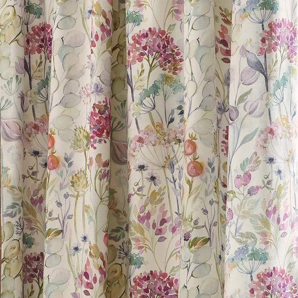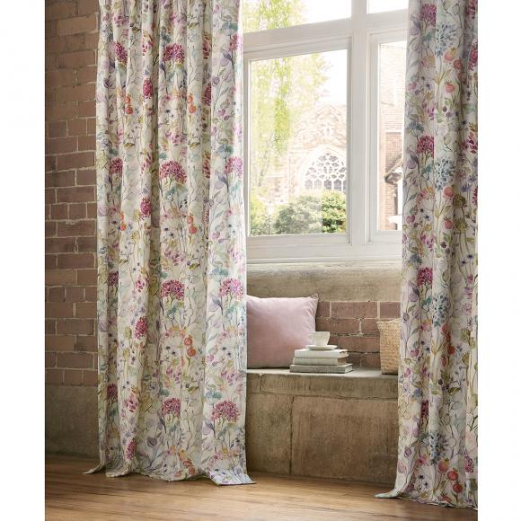 Inspired by the British countryside, this stunning curtain features hand painted watercolour meadow flowers gathered in hedgerow. Painted in a luxurious colour palette of warm reds, soft greens, pale smoky blue and rustic terracotta. Printed onto a soft cream cotton linen