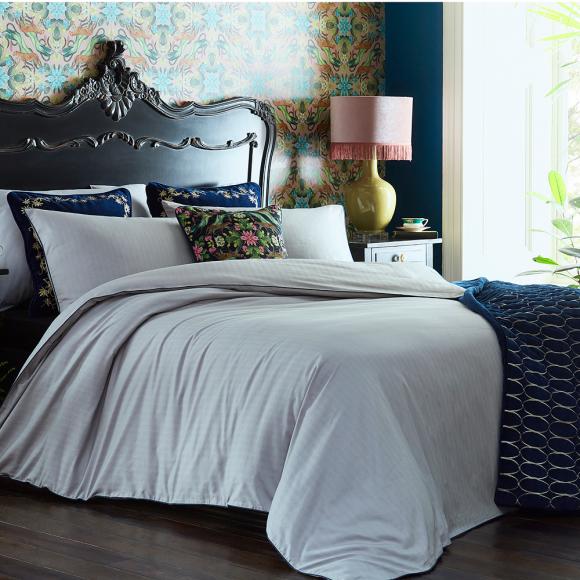 Available in a choice of three sizes, the natural design of blooming flowers and verdant leaves create a relaxing simplicity. Framed by contrasting Midnight piping and with two pillowcases included.