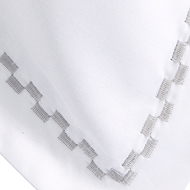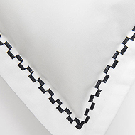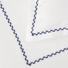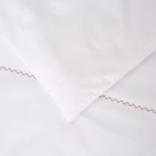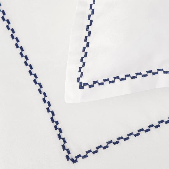Decorated only with thin lines of checkered fancy stitch framing the bed linen, it is the angelic white cotton that is the real focus.