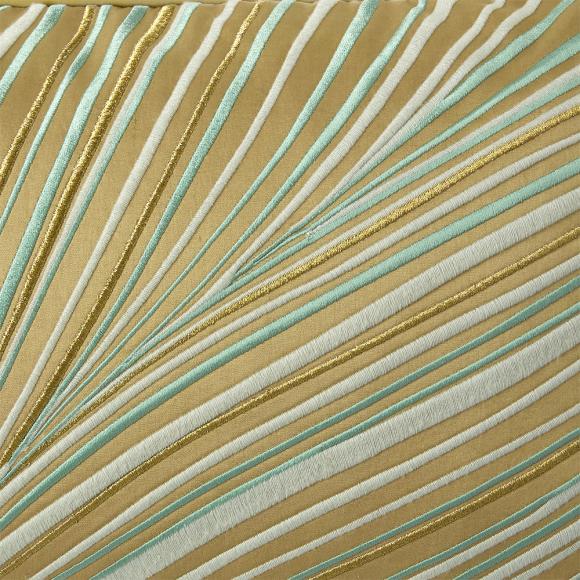Waves of golden sands, reflections upon water, or the expression of air, the stunning embroidered design evokes a virgin landscape.