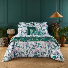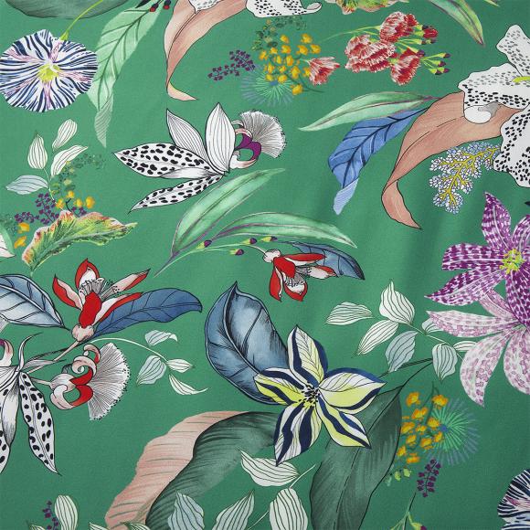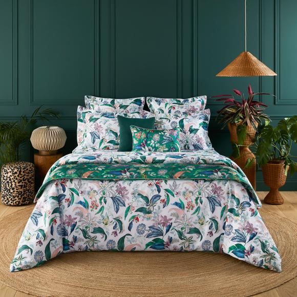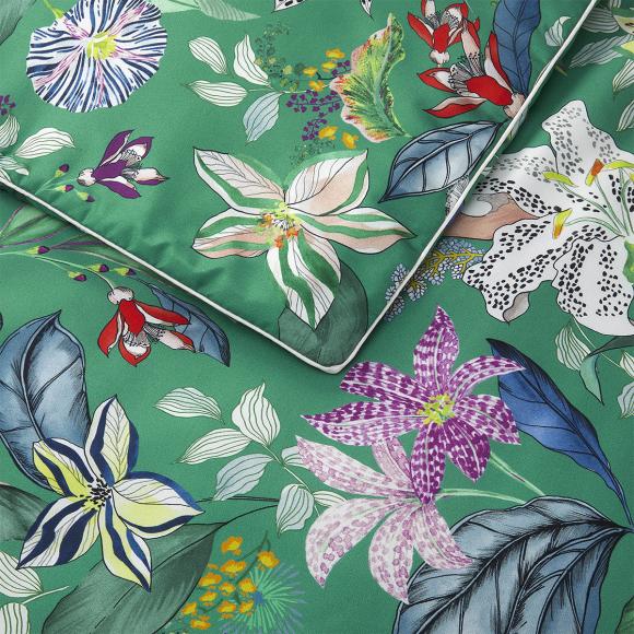 The Bahamas counterpane comes in a beautiful background of rich green with stunning floral decoration, which combines wonderfully with the silk base fabric to produce a fabulous contrast for the bed linen.