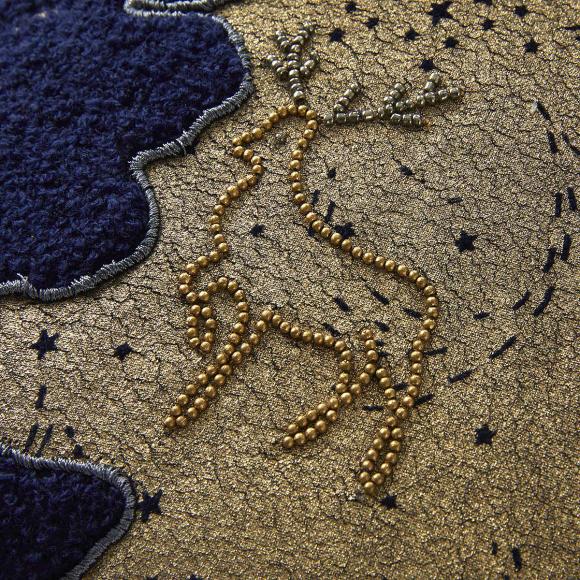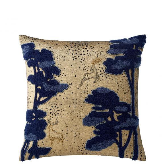 The Boreale cushion case comes in a beautiful rich gold and deep blue colourway with beautiful embroidered detail.