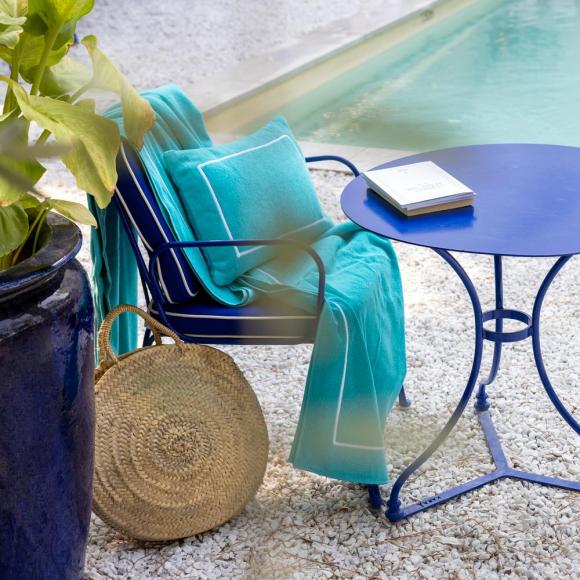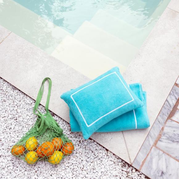 Crafted from water-absorbent organic terry cotton, the design is outlined with a contrasting burden stitch finish. The French Riviera wouldn't be the same without this luxurious collection of beach towels, beach pillows and beach bags.
