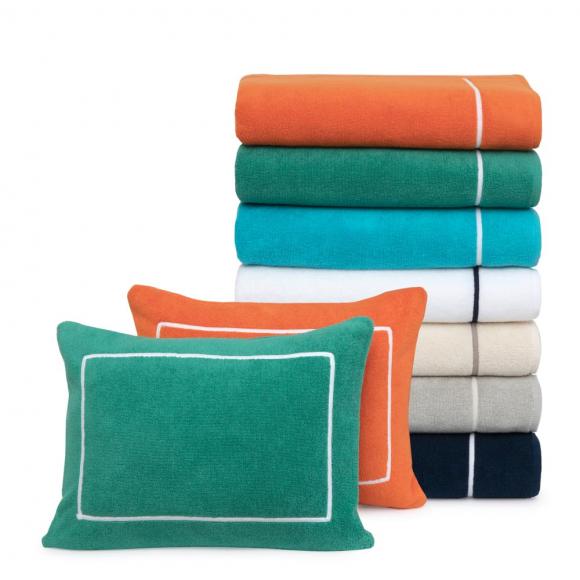 Crafted from water-absorbent organic terry cotton, the design is outlined with a contrasting burden stitch finish. The French Riviera wouldn't be the same without this luxurious collection of beach towels, beach pillows and beach bags.