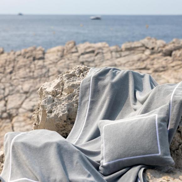 Crafted from water-absorbent organic terry cotton, the design is outlined with a contrasting burden stitch finish. The French Riviera wouldn't be the same without this luxurious collection of beach towels, beach pillows and beach bags.