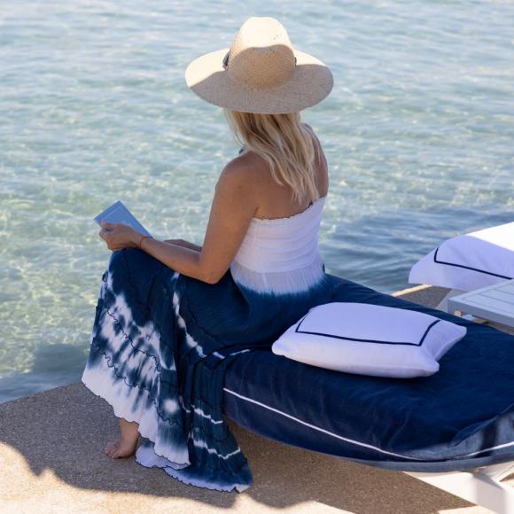The Croisière beach towel is the most renowned beach towel of Yves Delorme and leads the Côtier | Croisière beach range. Simple, with its contrast bourdon framed finish and super sized dimensions. The French Riviera wouldn't be the same without this luxurious collection of beach towels, beach pillows and beach bags.