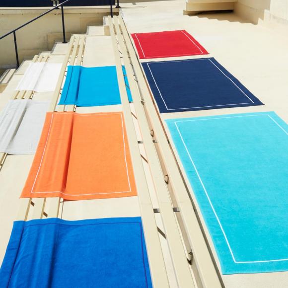 The Croisière beach towel is the most renowned beach towel of Yves Delorme and leads the Côtier | Croisière beach range. Simple, with its contrast bourdon framed finish and super sized dimensions. The French Riviera wouldn't be the same without this luxurious collection of beach towels, beach pillows and beach bags.