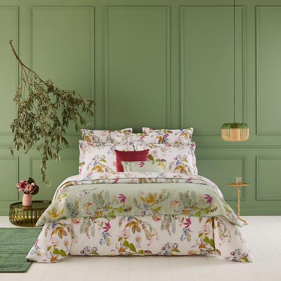 A decorative counterpane in a corresponding floral print to the rest of the Flores bed linen collection by Yves Delorme.