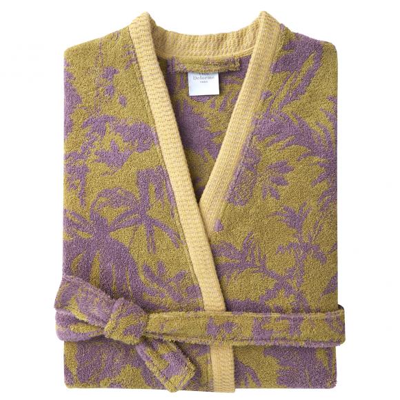 This kimono robe is made using a superb bicoloured jacquard, and features a border trim, pockets and a belt.