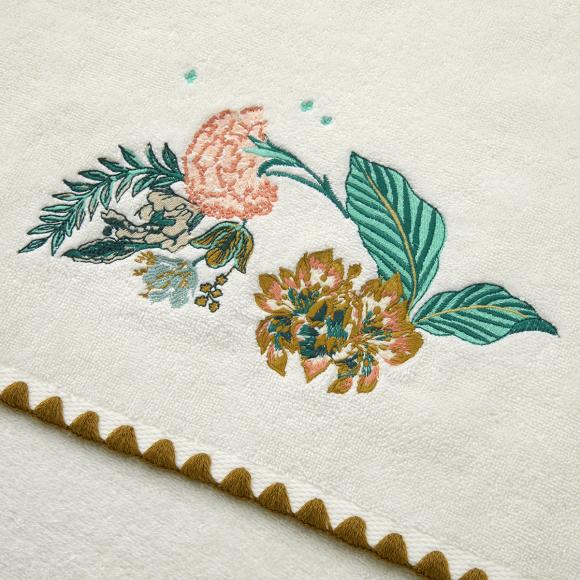 Stunning floral embroidery with a co-ordinating scalloped border make these towels reminiscent of traditional art and fabrics of the Middle East. To match in with the rest of the Golestan range, these towels are adorned with the central floral motif the rest of the items share.