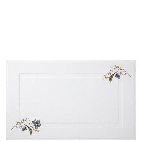 This white Terry cloth bath mat by Yves Delorme features the floral motif found across the entire collection. This stunning addition to the range is an organic blend of cotton (83%) and modal (17%).
