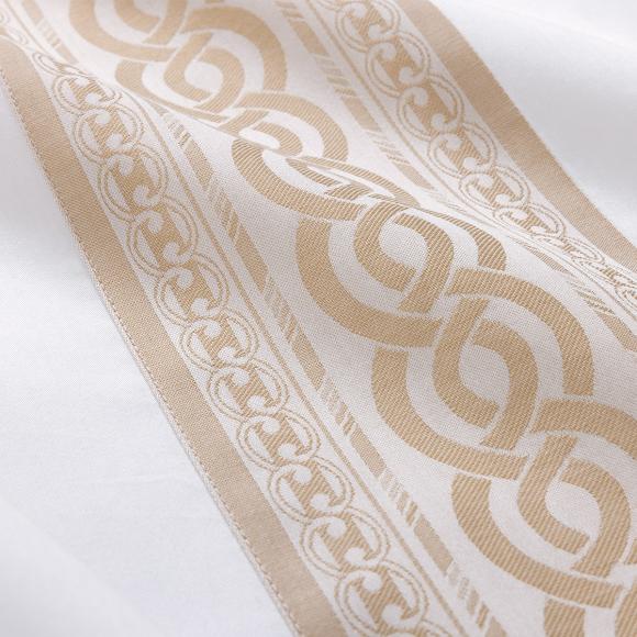 Joyau, very much the "jewel" in the crown, uses the Triomphe blanc base fabric, but stylises this with a luxury jacquard appliqué band of links and ornaments in gilded bronze.
