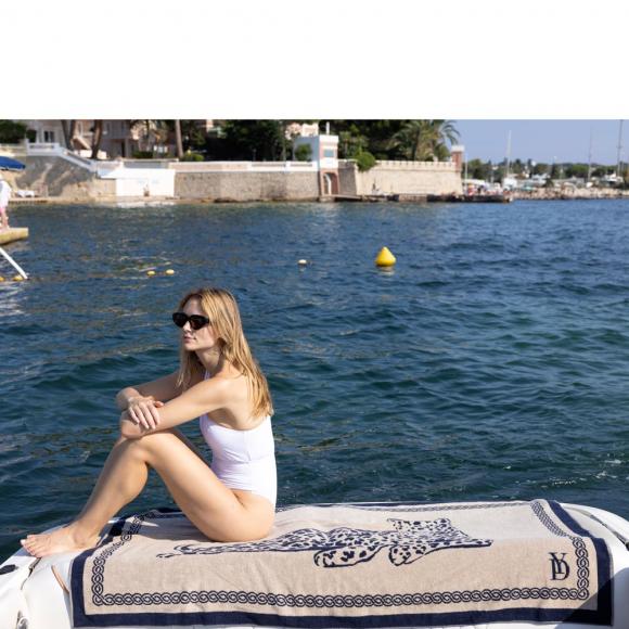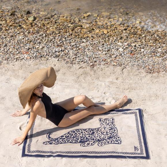 The stunning léopard beach towel features a fabulous bi-colour design, and is superbly styled with its chain link and plain contrast double framed border. The beach towel you just cannot be without, stunning.