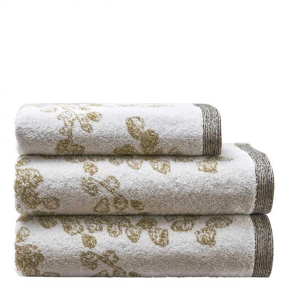 Translated into English as "whispers", the range features a jacquard pattern of bending golden branches as they follow the faint whispering of the wind.