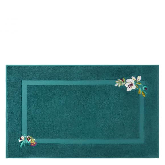 This solid Terry bath mat by Yves Delorme features a beautiful embroidered floral motif. This stunning addition to the Panorama towel range is made using 83% organic cotton combined with the softness of 17% modal