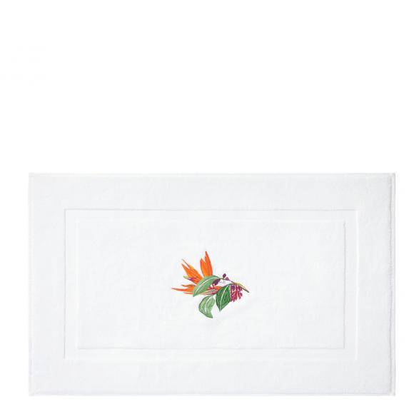 This white Terry cloth bath mat by Yves Delorme features a beautiful embroidered floral motif in the centre. This stunning addition to the Parfum range is made using 100% organic cotton.