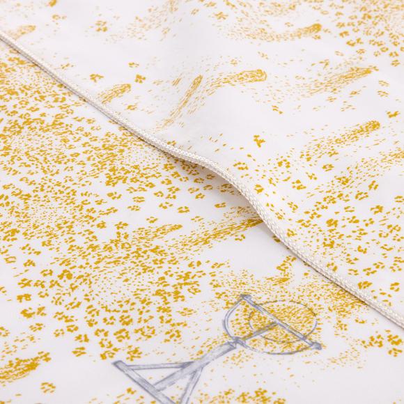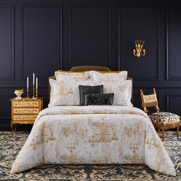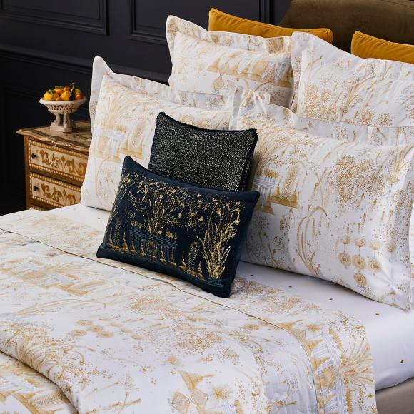Printed on organic cotton sateen, Royal bases its theme on fireworks display at the Palace of Versailles, evoking the Sun King and sumptuous festivities.