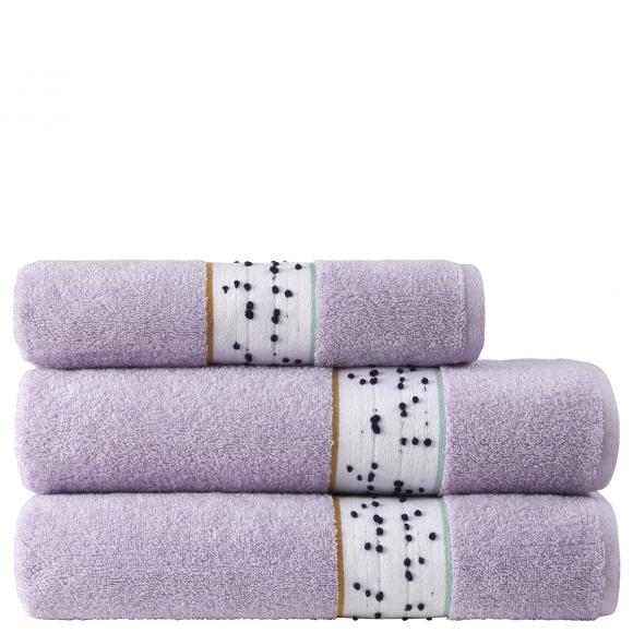The towels from this collection are a gorgeous lilac shade with border finishing including pompoms.