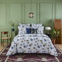 Tropical is a Spring/Summer 2024 release from Yves Delorme. A stunning and impactful design which celebrates exotic vegetation. Taking inspiration in particular from large greenhouses, palms and vines that all grow in tropical temperatures. 100% long staple combed organic cotton sateen is utilised for this beautiful set. The quilted coverlet (bedcover) features the Tropical printed design with neat floral stitching and 1 cm hem finish. A stunning accessory that will complete the Tropical range bed set.